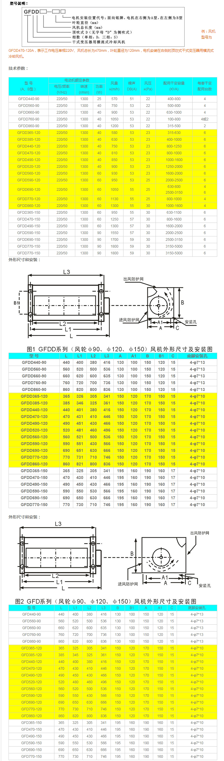 产品概述: GFDD系列顶吹式干式变压器用横流式冷却风机(下称:干变横流冷却风机)主要用于干式变压器冷却增容,及电子设备、配电柜、高低压开关柜等强迫送风冷却。干式变压器配上本风机散热后,可增容40~50%运行,从而大大提高干式变压器的承载能力,并延长了干式变压器的使用寿命,是国内外厂家普遍采用的最经济有效的方式。 本产品严格按JB/T8971-1999《干式变压器用横流式冷却风机》设计生产。电机定、转子铁芯采用优质冷轧硅钢片;低噪音轴承;叶轮采用铝合金表面电泳处理,再通过精细的动平衡调校;左右端板采用不锈钢板冲压成型,进风板、出风板和导风板采用铝合金型材搭扣组合;整个风机结构合理,造型美观,具有风量大、噪声小、温升低、寿命长、运行平稳、安装方便等特点。 工作原理: 该系列冷却风机用于干式变压器时,风机置于变压器线圈下部两侧,将冷风直接吹进变压器的线圈高、低压冷却风道,散热效果明显,可保障变压器的正常运行并延长其使用寿命。(风机开、停及变压器的超温报警、超温跳闸等功能有温控装置提供)。 |